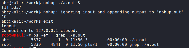 -작업 디렉터리에 쓰기권한이 없는 경우 $HOME/nohup.out에 저장
