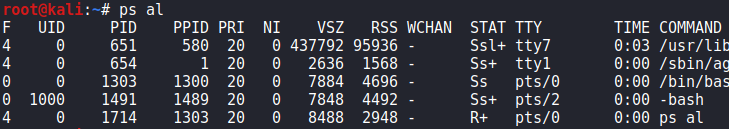 x (접속된 터미널뿐만 아니라 사용되고 있는 모든 프로세스들을 출력)