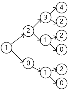 1로 시작하는 길이가 4인 계단수를 구하고자 한다면 아래와 같은 흐름이 된다.