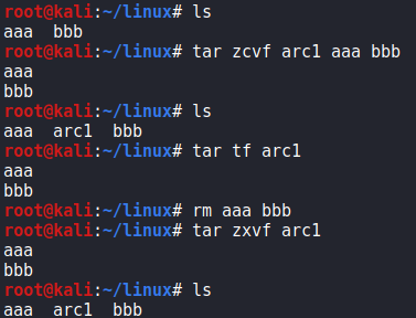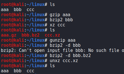 그 밖에 파일 압축 명령에는 compress, gzip, bzip2, xz 가 있으며,