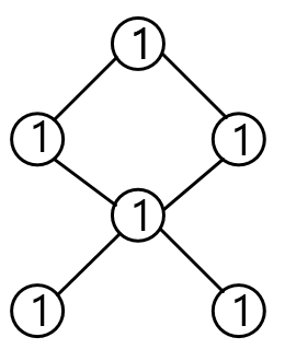 위 경우에서는 최상단 1은 3의 크기를 갖는 마름모를 갖을 수 있다.
