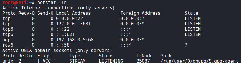 -l: listen되고 있는 소켓 정보 표시