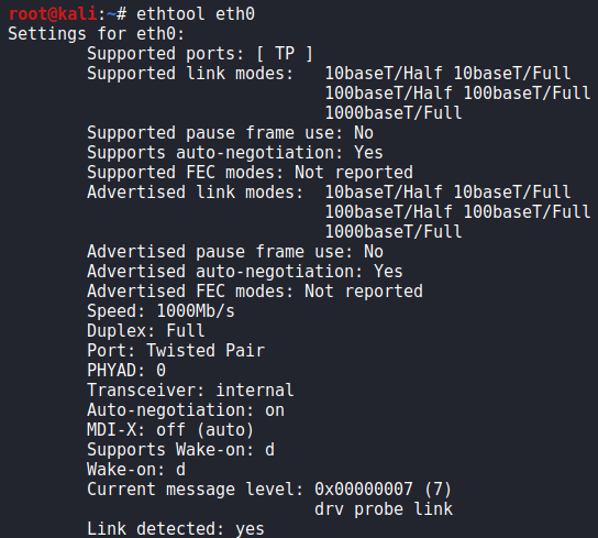 ethtool "인터페이스 이름"