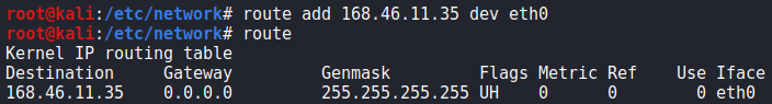 route add default gw "게이트웨이 주소" dev "인터페이스 이름"