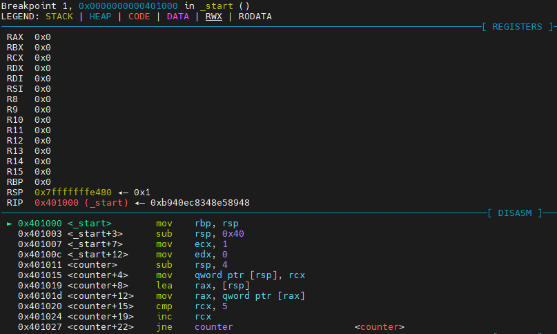 ni(=next instruction) 을 이용하여 한줄씩 명령어를 실행 할 수 있다.
