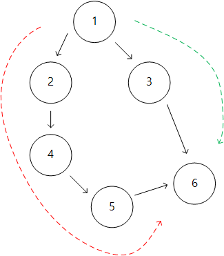 정점6에 방문하기 위해서는 4개의 edge 를 거쳐야만 한다.