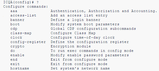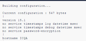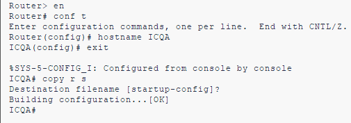 호스트 이름을 ICQA로 바꾸고 startup-config에 저장하시오.