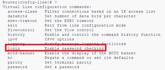 # line vty 만 하면 불완전한 명령어라고 출력된다.