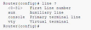 line 은 aux / console / vty 중 하나를 입력으로 받는데,
