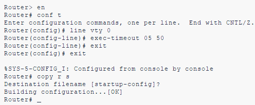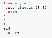 Telnet에 5분 50초 동안 신호가 없을시 해당 세션을 자동으로 종료하도록 라우터를 설정하시오.