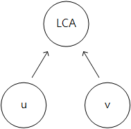 위 과정을 마치고 나면 u 와 v 그리고 LCA 는 아래와 같은 구조를 갖게 된다.