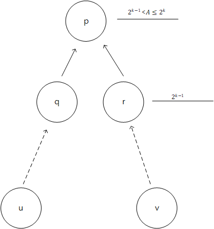 여기서 p 는 2k 번 위로 올라간 곳에 위치 할 수 있거나