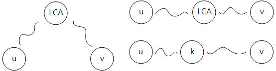v -> LCA 간 높이 차이를 이용하여 k 가 어디에 있을 지 추정 할 수 있기 때문이다.