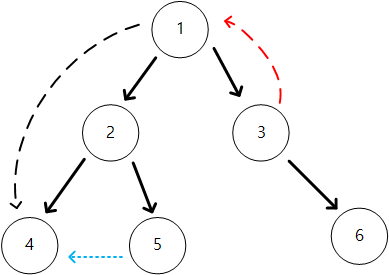- 트리에서 조상과 자손 관계가 아닌 정점들 간에 연결 된 edge
