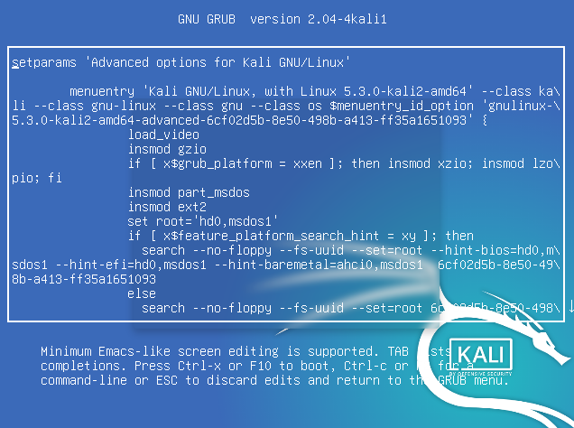 GRUB에서 e를 편집모드가 실행. "/boot/grub/grub.cfg" 를 수정