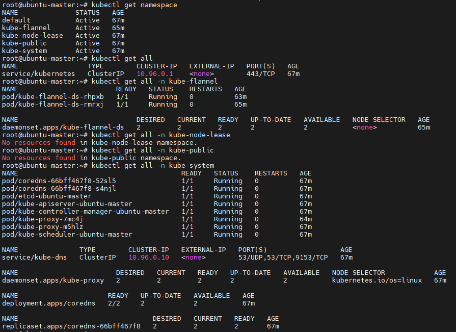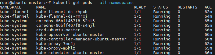 - kube-flannel 및 coredns 등이 모두 Running 상태여야 한다.
