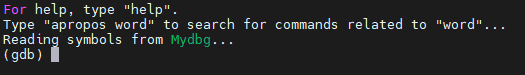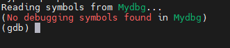 CMake 기준 위 코드를 Debug 로 빌드한다. (실행파일 이름은 Mydbg 라 가정한다.)
